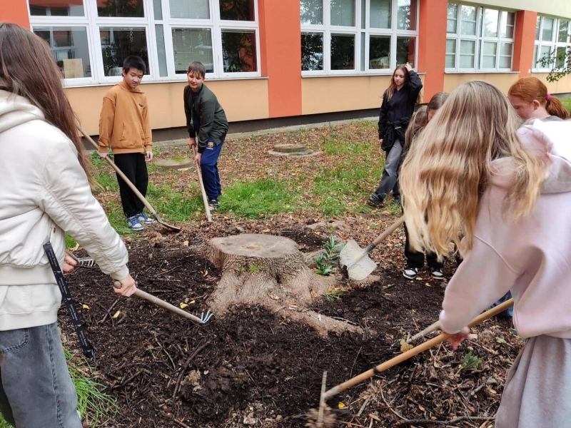 Žáci 7.A a 7.B se v rámci projektu Cirkulární školy zúčastnily workshopu “ Se zahradníkem do zahrady”. Hravým způsobem si zopakovaly základní přírodní děje v zahradě a aktivně se podílely na zlepšení designu školní zahrady. Za pomoci lektora založily nový záhon a zasadily špenát. Toto zážitkové učení na školním pozemku je velmi bavilo.