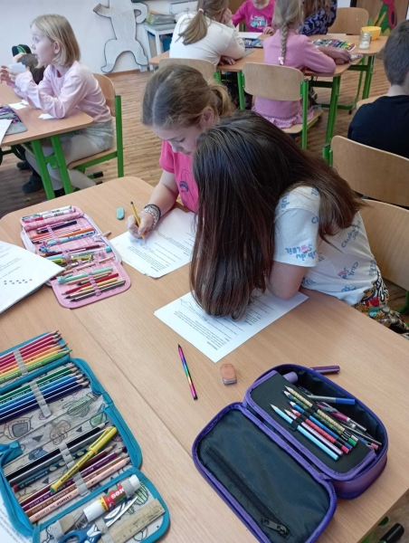 Lednová centra ve 2. B nesla název Sníh a led a byla plná objevování, tvoření a přemýšlení. V matematice si děti procvičovaly rýsování úseček, z nichž vznikaly sněhové vločky. Každý si mohl zvolit obtížnost podle své úrovně. V ateliéru děti skládaly lišku a umísťovaly ji do vlastní zimní krajiny. V centru pokusů a objevů pracovaly s ledem – například odhadovaly, zda dokáží pomocí provázku zvednout kostku ledu, a sledovaly, jak se led mění působením tepla nebo soli. Ve čtení se seznamovaly s různými zajímavostmi o sněhu a ledu a odpovídaly na badatelské otázky. V psaní pak tvořily sněhový komiks, ve kterém rozvíjely fantazii a vypravěčské dovednosti. Děti se dozvěděly mnoho zajímavostí, procvičily si spolupráci i samostatnost.