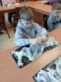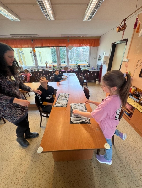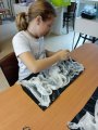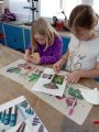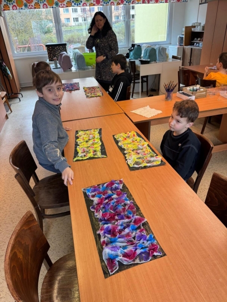 První skupina si vyzkoušela barvení hedvábí, při němž děti popustily uzdu své fantazii a vytvořily originální vzory. Druhá skupina se věnovala výrobě ozdoby na lžičku z fimo hmoty, kde vznikaly nápadité a jedinečné výtvory.