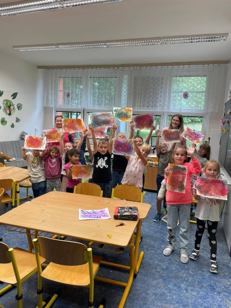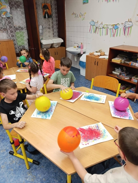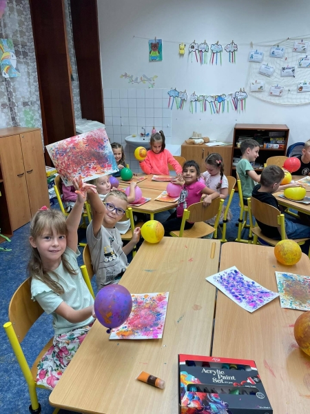 V pátek to ve družině žilo barvami! Naši nultáčci a prvňáčci, kteří si už ve škole krásně zvykli, zkoušeli malování balonky – netradiční metoda, která je úplně nadchla. Míchali barvy, experimentovali a vznikly nádherné obrázky plné fantazie, smíchu a radosti. Už se těšíme na další společné tvoření!