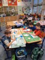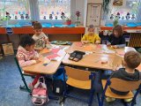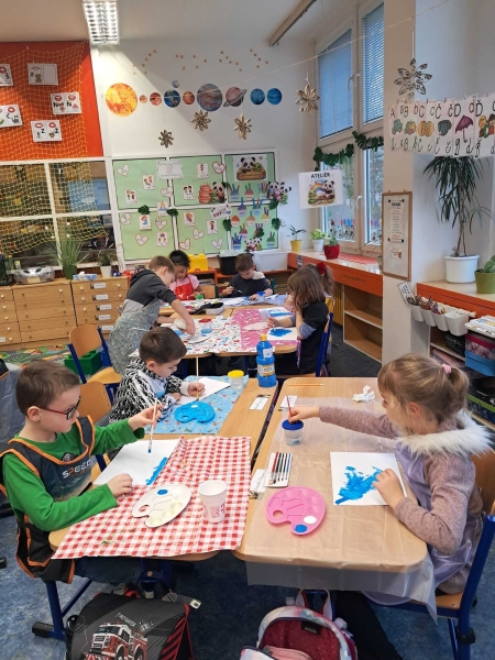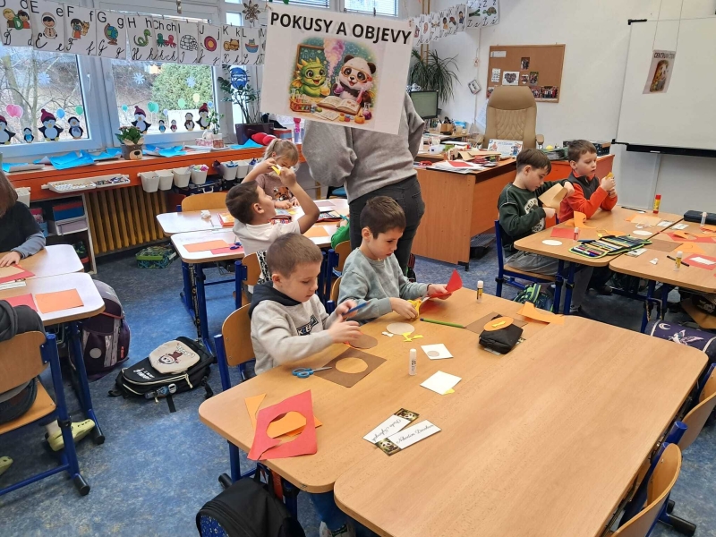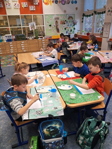 Trochu jsme se seznamovali, trochu učili, vyráběli, malovali, hráli na boomwhackers, objevovali novou třídu i poznávali paní učitelku a učili se navzájem. Nechyběly ani hry, pohyb a společné zážitky.